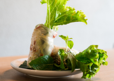 - Cha Gio – Frühlingsrolle mit Gemüse, Nuoc Cham Sauce (glutenfrei, vegan)